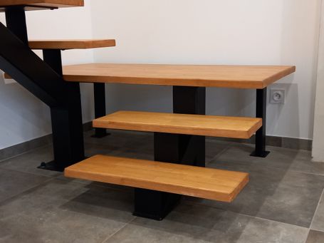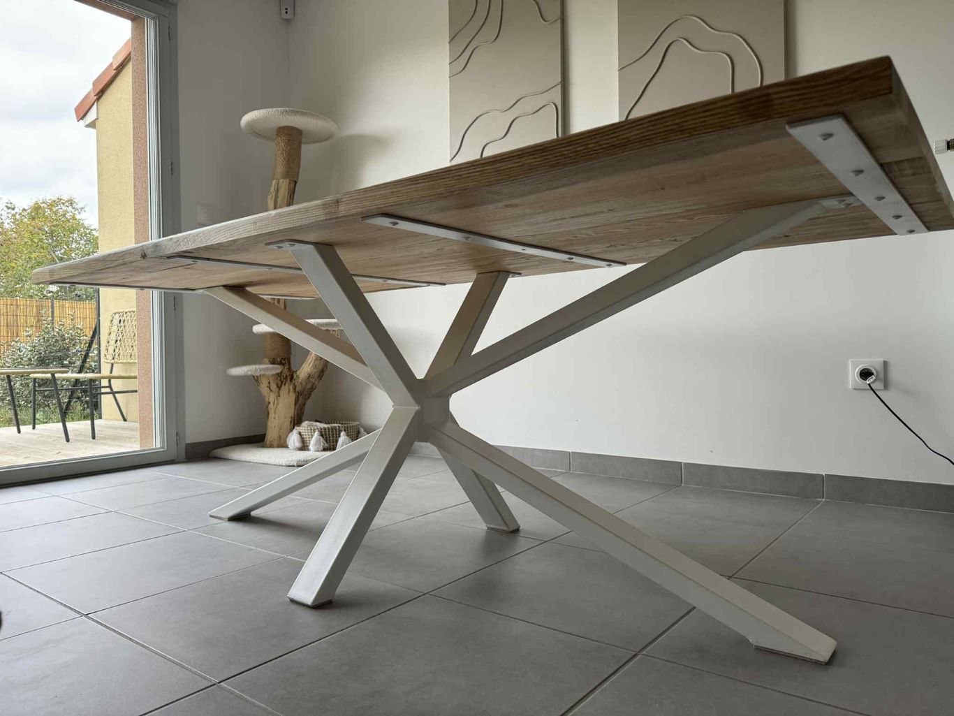 A partir d'une idée du client, réalisation d'un pied de table de séjour en étoile (photo de droite).